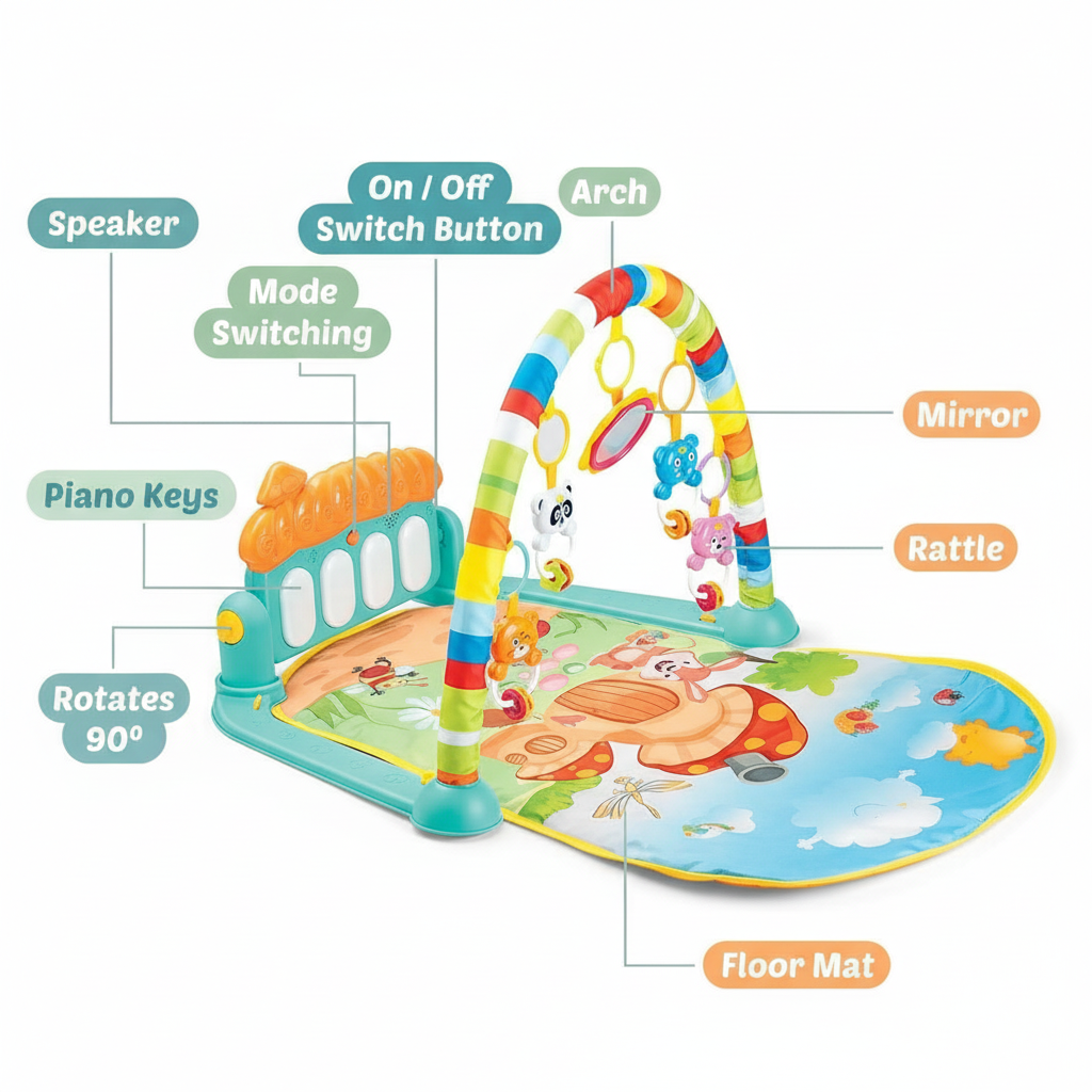 Turn playtime into a mini concert with this Kick & Play Piano Gym Activity Mat. Designed for growing babies, this soft play mat combines a musical kick piano, colourful activity arch and hanging toys to keep your little one engaged from tummy‑time to sitting and beyond.